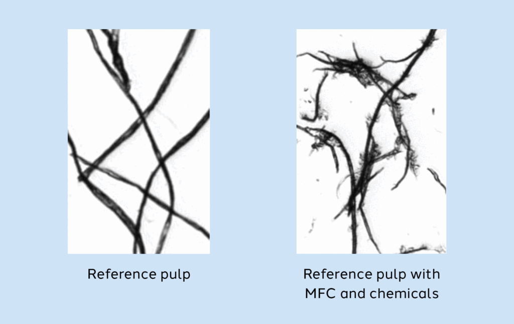 ”MFC yhdessä muun hienoaineen kanssa muodostaa retentiokemikaalin avulla agglomeraatteja, ja myös samanaikaisesti MFC:n jakeiden kiinnittyminen kuidun seinämään ilmenee kuidun mitatun paksuuden muutoksena. Merkittäviä kuituflokkeja kehittyy vasta kun retentiokemikaalin annosta lisätään. Tämän ilmiön hallinta on tärkeä osa tulevaisuuden tuotanto- ja tuotekonsepteja melko kalliiden kuitufibrillien käyttöä optimoitaessa esimerkiksi kartonkien lujuuden ja resurssitehokkuuden näkökulmista”, korostaa Jouni Matula Wetend Technologies Oy:stä.